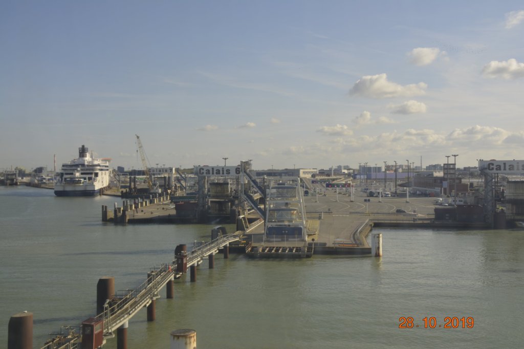 After clearing customs and boarding the ship, we were allowed out of the coaches to venture into the ship for lunch and to relax. They have everything on those ferries, even places to exchange money. We had lunch on the ferry & it was a peaceful and uneventful sail into Calais; just under 2 hours.