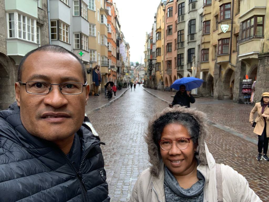In the Austrian alpines, specifically Gries am Brenner (Brenner Pass), it started to snow. What a welcome into Austria! Everywhere was a sea of white; everything – both man-made and natural – was covered in snow! Picture a Christmas glass snowball; felt like we were in one – with snow falling all around us. An actual winter wonderland, it was mesmerising, spectacular and amazing to watch. Especially for us, being from the tropics and never experienced snowfall like this ๐.