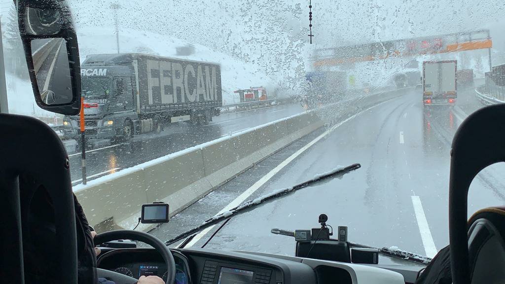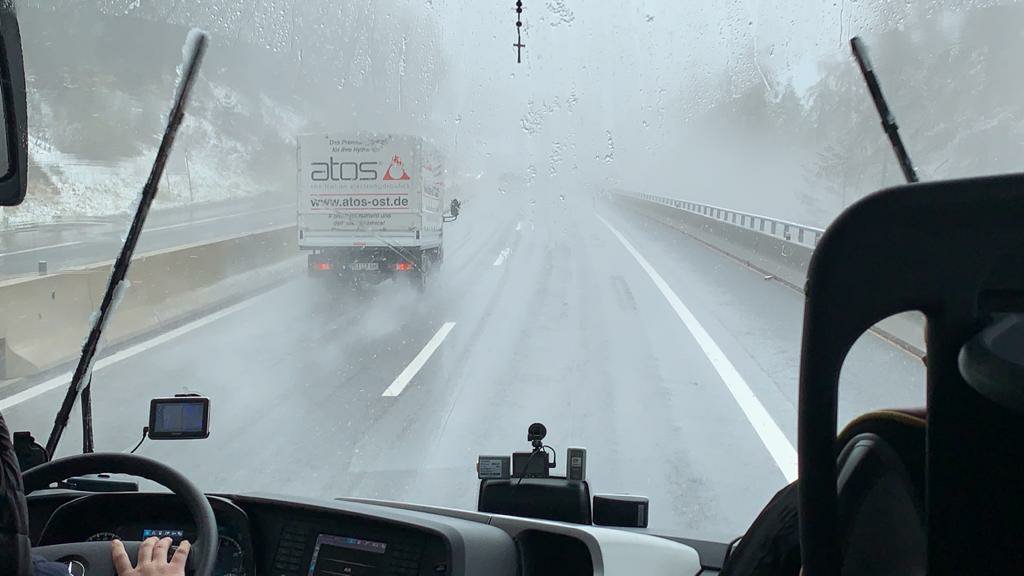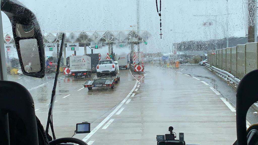 Driving through snow is not easy and is tricky, especially with lots of traffic: there were cars, coaches, trucks, etc of different sizes and shapes. Although the snowfall slowed them down, it did not stop them, especially the bigger ones. The snow definitely did not stop Zoltan our driver, just made him drive slower and more carefully as he manoeuvred the coach skilfully up and then down the pass into Innsbruck.