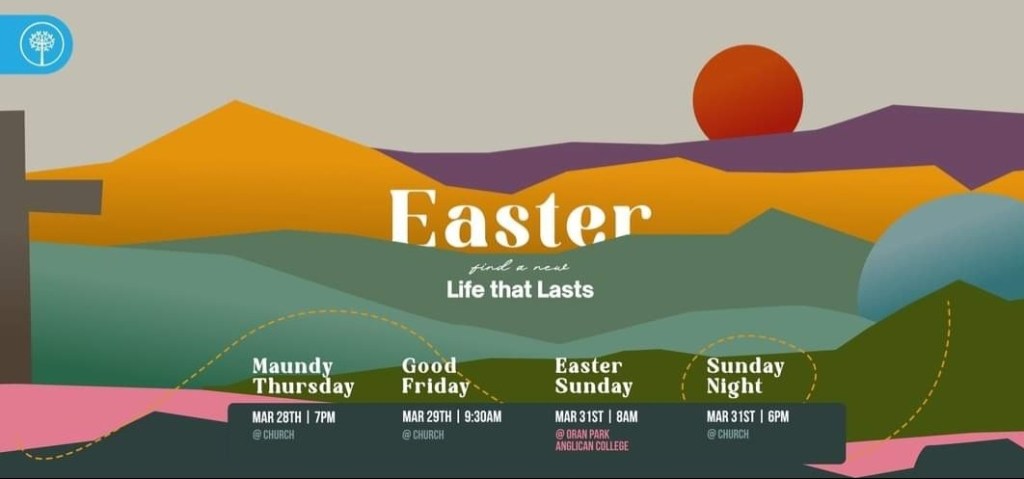 Easter program for NewLife Anglican, Oran Park – here is the address 47A Central Ave, Oran Park NSW 2570, Australia